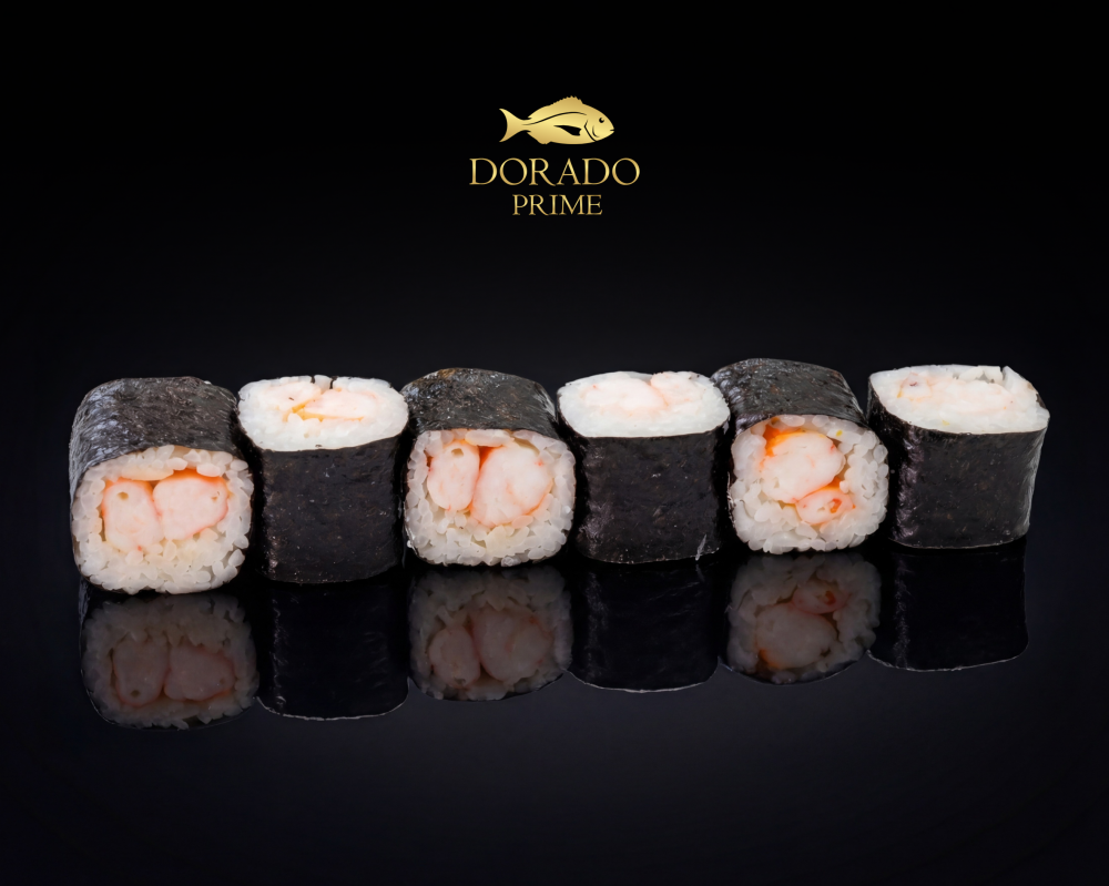 Изящный дуэт жемчужного риса и сочной королевской креветки, облаченный в лист нори