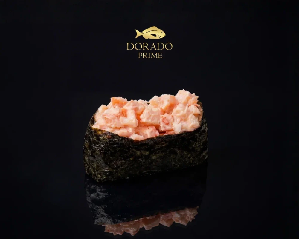 Нежнейший, мелко рубленный тар-тар из креветки который идеально подчеркивается и раскрывается благодаря соусу спайси