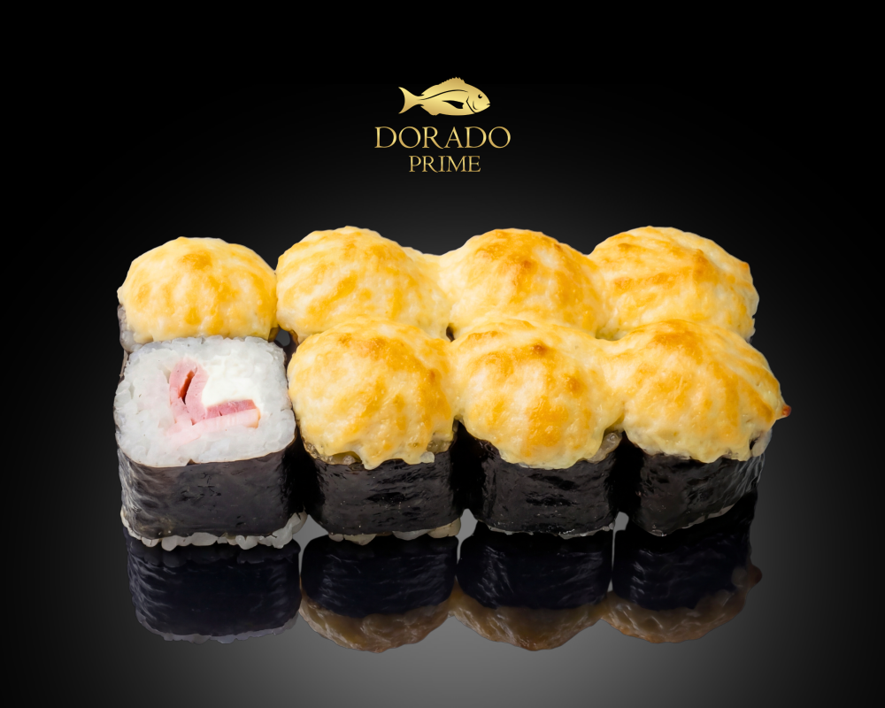 Нежный запеченный ролл с аппетитной сырной шапочкой и яркой начинкой из бекона и креметты.